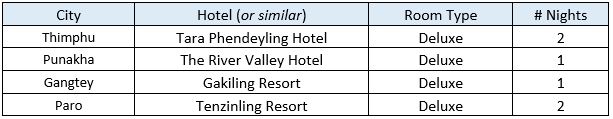 - International airfare (Singapore <> Paro) and accompanying taxes & fees