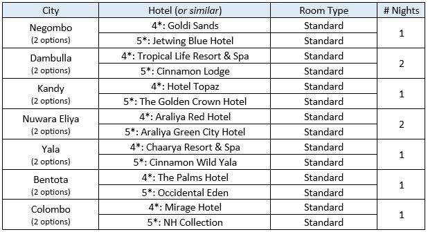 - Proposed accommodation options are subject to availability based on actual travel dates. In case of non-availability, an alternative accommodation at a similar or superior hotel will be secured.